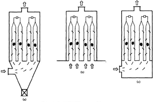 圖7-2 UF系列單機(jī)袋式除塵器的三種組裝形式