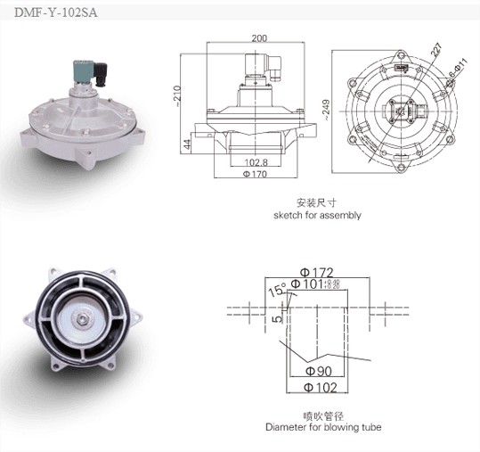 DMF-Y型電磁脈沖閥為淹沒式閥(亦稱嵌入式閥),它直接安裝在分氣箱上,具有更好的流通特性。壓力損失有所下降,適合于氣源壓力較低的工作場(chǎng)合。