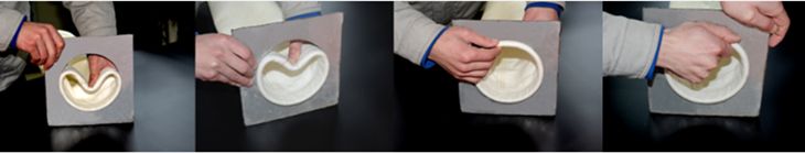 ?。?)以雙手緊握槽形墊彈簧圈(不需把除塵布袋拉起),雙手把彈簧環(huán)圈往里壓使之成“C”形。在保持彈簧環(huán)圈成“C”形的同時,放置溝槽形彈簧圈隆起的一邊到O近的花板孔邊。一手握著已裝嵌好的隆起的“C”形彈簧環(huán)圈的一邊,另一只手把隆起的“C”形固定在花板邊。