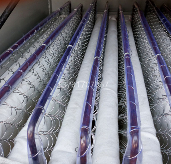 除塵骨架采用鋼絲框架和彈簧絲,彈簧絲具有很好的伸縮性,振動電機(jī)在帶動濾袋振動時,彈簧絲有助于濾袋表面的灰塵抖落。