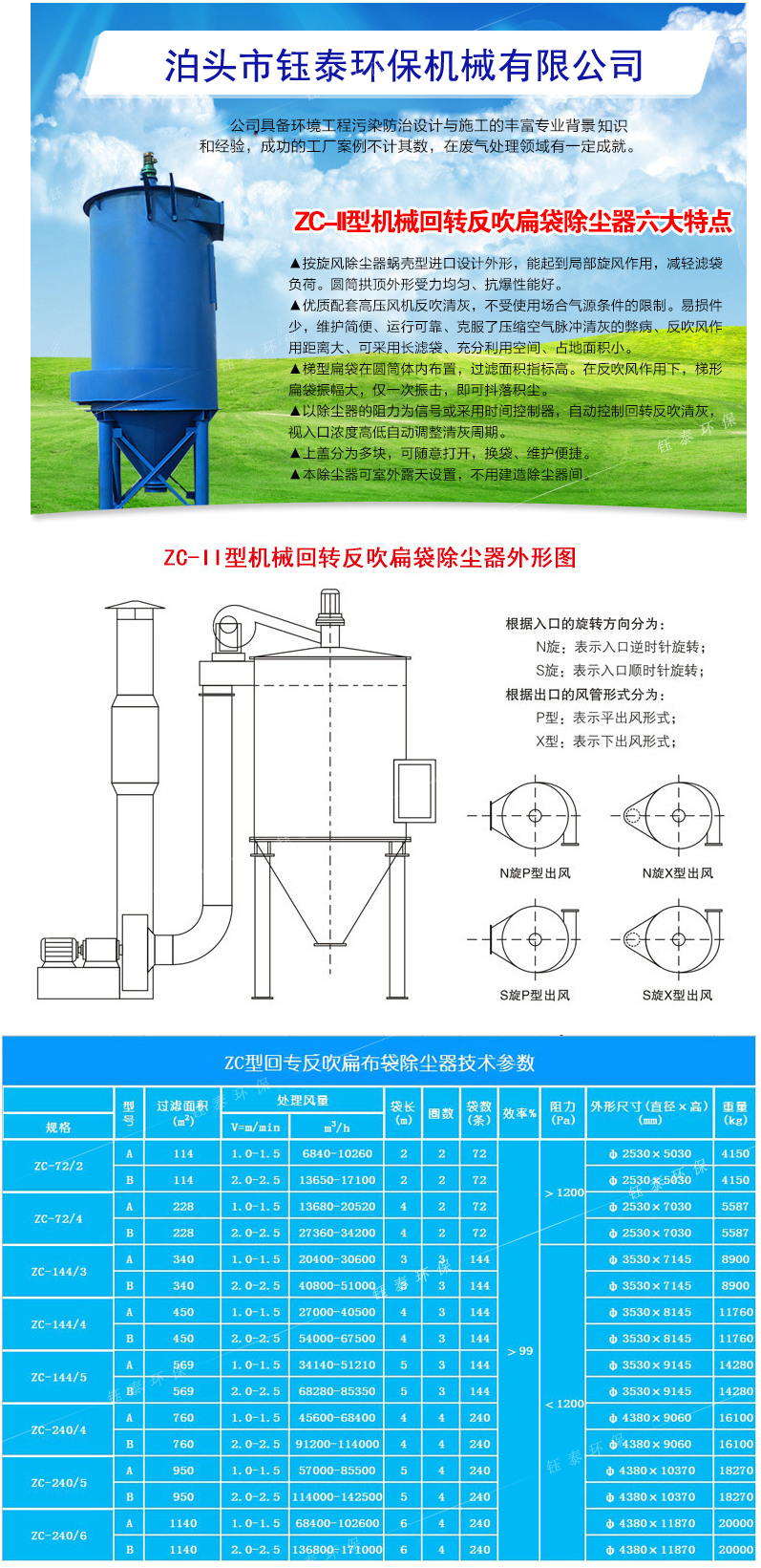 ZC機(jī)械回轉(zhuǎn)反吹風(fēng)扁布袋除塵器
