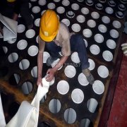 近日,我公司接到山西太水泥廠窯尾除塵器更換除塵布袋項目,此次更換的布袋為高溫覆膜氟美斯布袋,在布袋的安裝過程中要注意布袋的保護,不可為趕緊工期不按要求安裝,防止覆膜在安裝過程中損壞。安裝完畢后要進入除塵器底部觀察布袋的底部是否充實,防止漏裝袋籠的下半 -