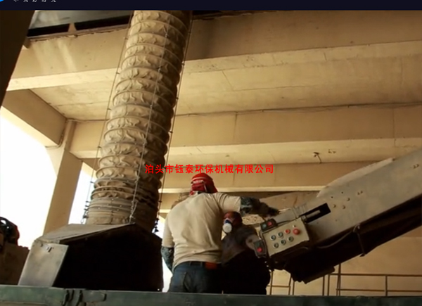 水泥廠多采用自動裝車機進行袋裝水泥裝車,來提高袋裝水泥裝車速度和工作效率,但由于皮帶機出包溜板與汽車車廂存在約1.5m左右的高差,裝車時必然造成碼包周邊揚塵,且粉塵特點范圍大、濃度低。 針對上述揚塵問題,我公司研制袋裝水泥裝車機除塵器,利用與裝車皮帶機協(xié)同作業(yè)的吸塵罩捕集揚塵,再經(jīng)氣箱脈沖布袋除塵器進行過濾,從而降低大氣粉塵含量,達到我國粉塵排放標(biāo)準(zhǔn),改善裝車工作環(huán)境。